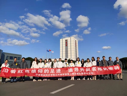 近日,公共教学部(马克思主义学院)第二党支部以“沿着红色信仰的足迹 追寻共同富裕的密码”为主题赴宁波市北仑区霞浦街道张人亚党章学堂和宁波宝新不锈钢有限公司开展主题活动。在张人亚党章学堂,围绕“初心是什么、入党为什么、为党做什么”,感悟党性、讨论党性、反思党性,抒发了对党忠诚的初心,强化了红色记忆,坚定了理想信念。在宁波宝新不锈钢有限公司,调研并了解了一个“坚持”、两个“深化”、三个“聚焦”和三个“提升”的宝新党建工作体系,共同学习和感受了现代化企业在促进共同富裕中所发挥的积极作用。