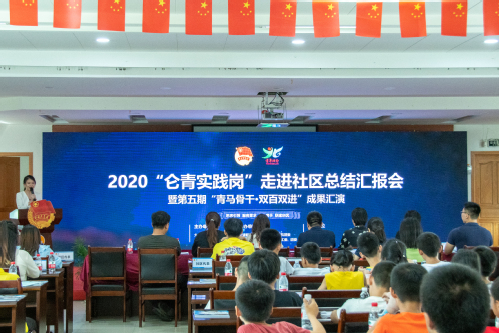 7月31日下午,2020“仑青实践岗”走进社区总结汇报会暨第五期“青马骨干•双百双进”成果汇演在大碶街道横杨社区举行。大碶街道党工委宣传委员郑凌云,北仑团区委副书记张佳誉,横杨社区党委书记陆琪燕等嘉宾领导应邀出席,街道下辖各社区团委书记、团务工作负责人,辖区“胜克”、“灵动”假日学校共计60余名代表参加了此次活动。