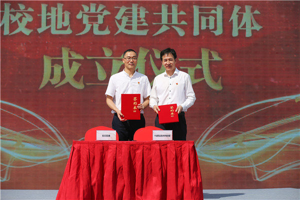 宁职院党委副书记马苗金与北仑区委常委、组织部部长朱安伟签署校地党建共同体协议