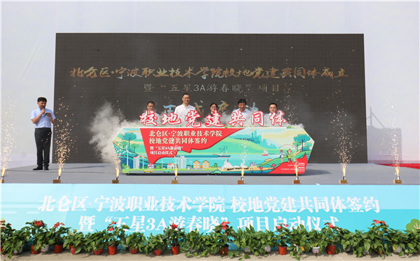 6月1日,宁波职业技术学院与北仑区校地党建共同体成立暨“五星3A游春晓”项目启动在春晓街道三山村举行。宁波市教育局党委副书记徐文姬,北仑区委常委、组织部部长朱安伟,宁波职业技术学院党委副书记、院长张慧波,院党委副书记马苗金出席大会。