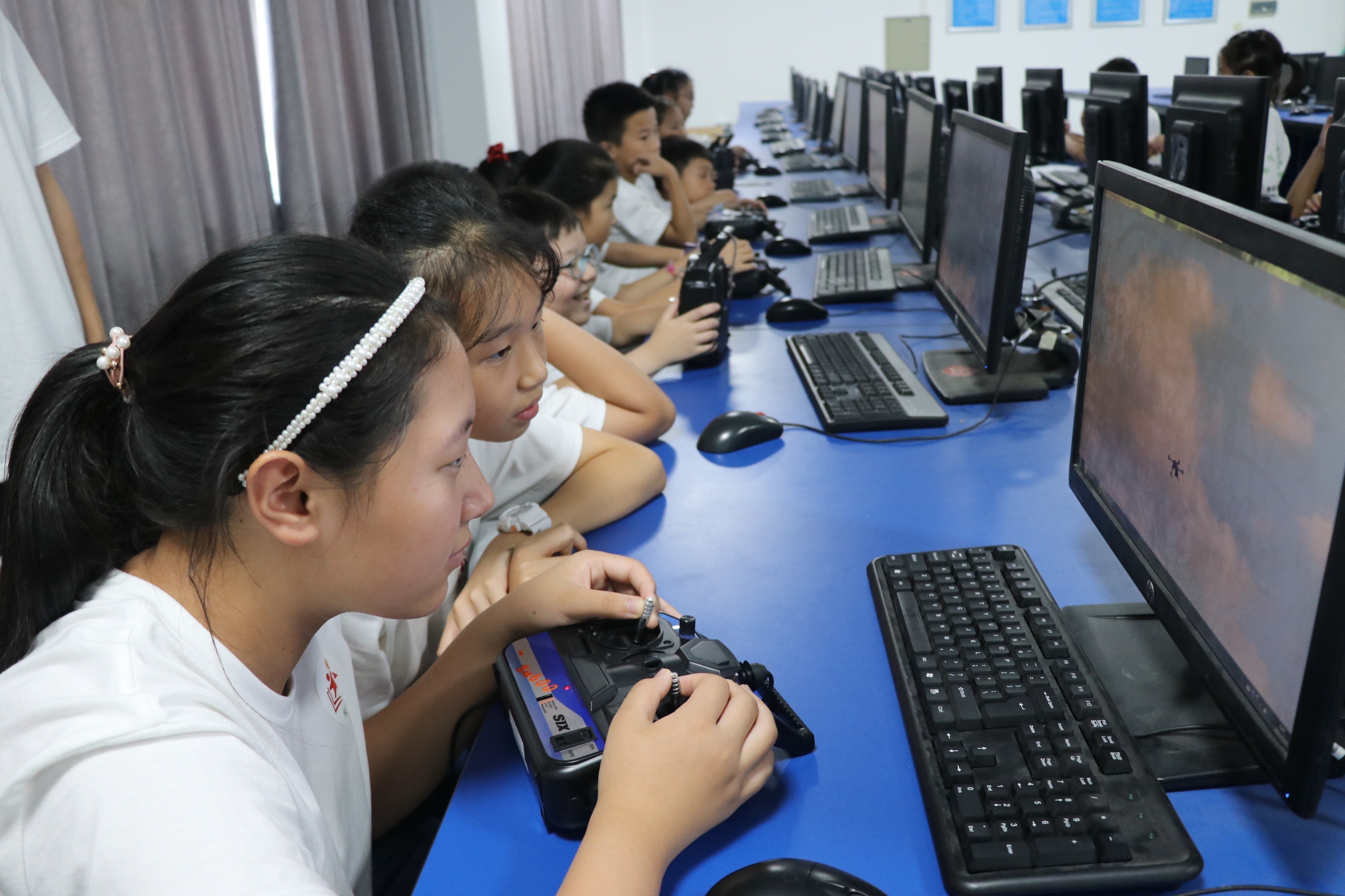 小学员们首先走进“创翼蔚徕”无人机行业示范展厅,大学生老师深入浅出地为孩子们科普了无人机的相关知识,带领他们参观展示机型,让孩子们对无人机产生了浓厚的兴趣。随后,小学员们转战模拟演练区进行实操训练,“机长”大学生们通过实际操作向孩子们展示了无人机编程以及模拟器装调,看着软件控制下的无人机上下翻飞,孩子们响起了热烈的掌声。