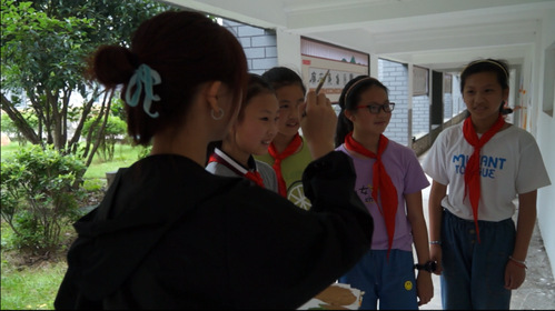 “对方学生很有参与的热情,下次墙面绘画部分我们要考虑共同绘制的可能,让郭巨学校的学生们参与进来”,带队教师封思勇边总结边给公益团的学生布置了新的任务。